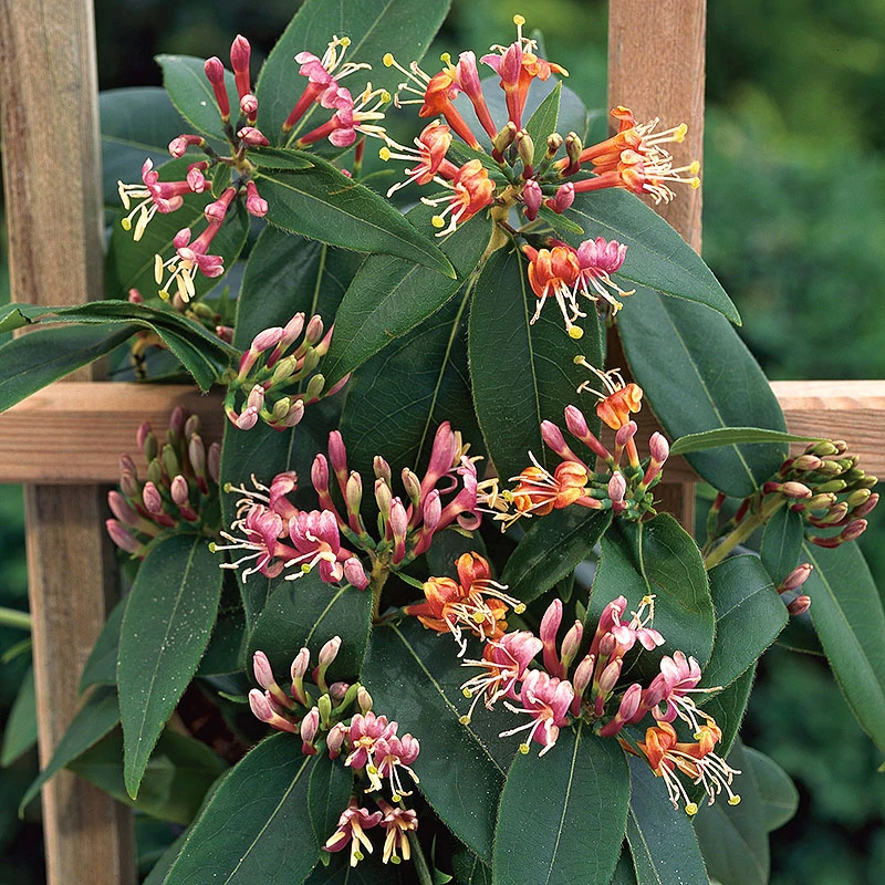 Denna slingrande vintergröna lian blommar med fantastiska, exotiska gulröda trumpetformade blommor juli till augusti.